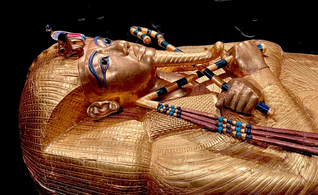 One entire gallery is filled with the treasures removed from Tutankhamun’s tomb, discovered in 1922 by Howard Carter and his team. My sister and I had the privilege of viewing the traveling exhibit in Seattle in 1978. Now 48 years later we are able to experience even more of the treasures in their home country.