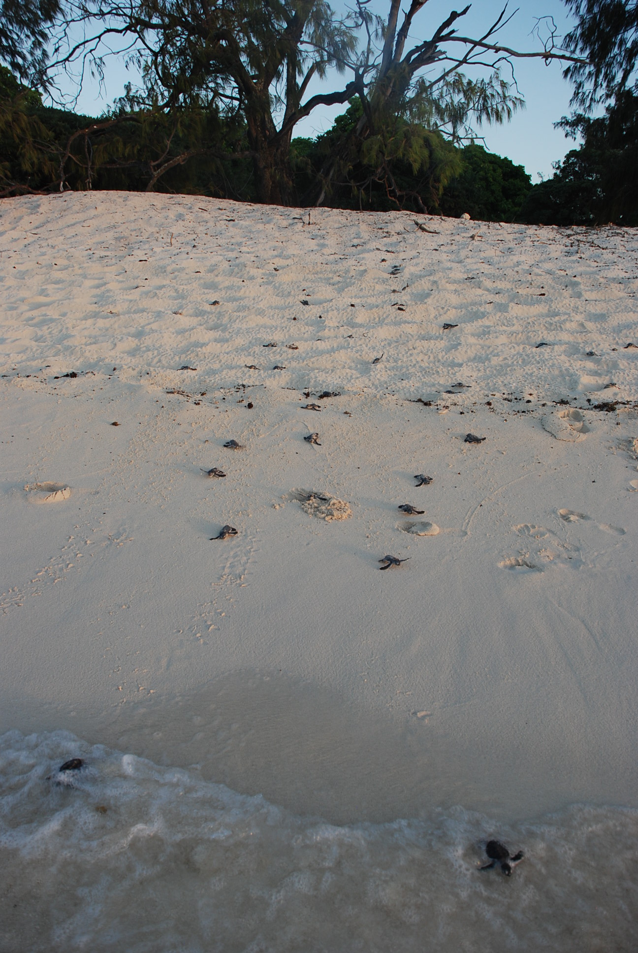 Heron Island on the Great Barrier Reef was another birthday destination. My number one goal at Heron Island was to see baby sea turtles hatch and run for the sea. I was not disappointed. Our first evening on the island we saw a nest hatch, and every day after that as well. We also saw a large female turtle cover her nest and return to the sea, and on our last day, very early in the morning, my sister saw a large female run to the sea from the shoreline. We saw sharks and turtles during our snorkle trips.