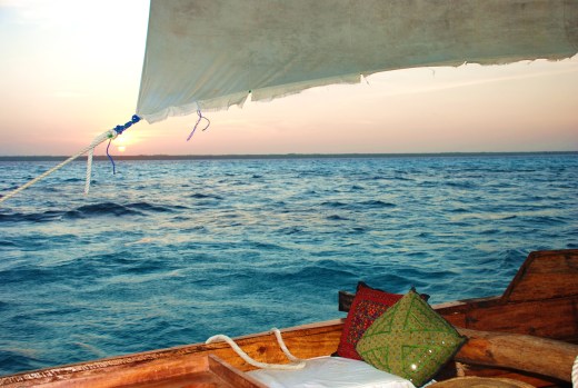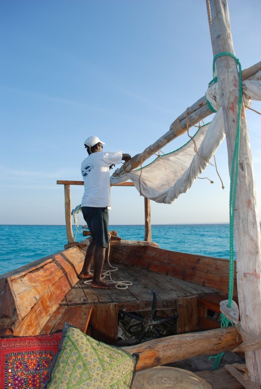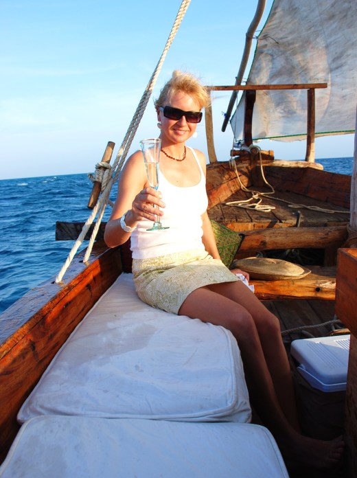 Champagne birthday toast, on a dhow in the Indian Ocean