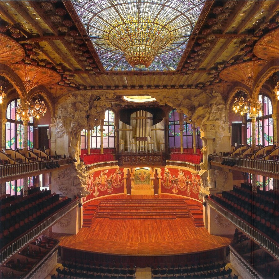 Palau Musica interior. (Photography is prohibited inside the building. This is a postcard.)
