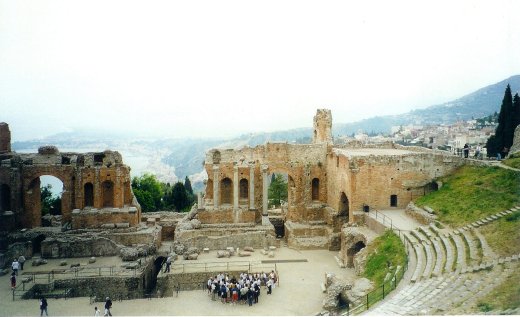 We spent several days in Taormina, enjoying the historical sites, wonderful food and abundant shops. Taormina is built onto a steep slope with many small streets, narrow stairways, picturesque walking areas, tiny shops, and very good restaurants. We walked through the Taormina amphitheatre and saw Mount Etna, Europe’s largest active volcano, in the distance. We were in Taormina in May 2001. Mt. Etna erupted soon after we left. Between July 17th and August 9th, Mt. Etna’s eruptions damaged tourist facilities and threatened the town of Nicolosi.