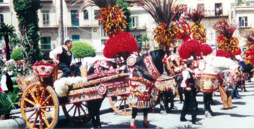 When my sister suggested that we visit Sicily, I couldn’t say no. Italy is a favorite destination for thousands of tourists every year, and I’ll never tire of visiting the mainland, but fewer travelers make it to Sicily. That is a misfortune. My sister and I spent a week in Sicily in May 2001, a first time visit for both of us. Our trip began in Rome, continued with a drive to and a few days stay in Florence, after which we returned to Rome. From Rome we flew into Palermo to start the Sicilian portion of our trip. For a few days we toured Palermo, including the Museo Archeologico Regionale, the Norman Palace (exterior only, it was closed on May 1st) and several churches. We were in Palermo on May 1st, Italy’s Labor Day and a national holiday. We stumbled upon a political rally, and although we didn’t understand what they were shouting and chanting, we had no doubt it was a protest. In Sicily we found that most of the local people did not speak English. It wasn’t a problem for us, we were equipped with an Italian pocket dictionary, knew a few important words such as vino, and found that hand signals go a long way. We thought is was fun and exciting to be in a place where fewer people traveled. One evening we did end up with a tuna pizza by mistake, and another night we had insalata di polpo (a salad of octopus tentacles), but all in all, we got by without speaking English. It didn’t take us long to discover the specialty of the area, pesce spada (swordfish), and it was the best swordfish we ever tasted.