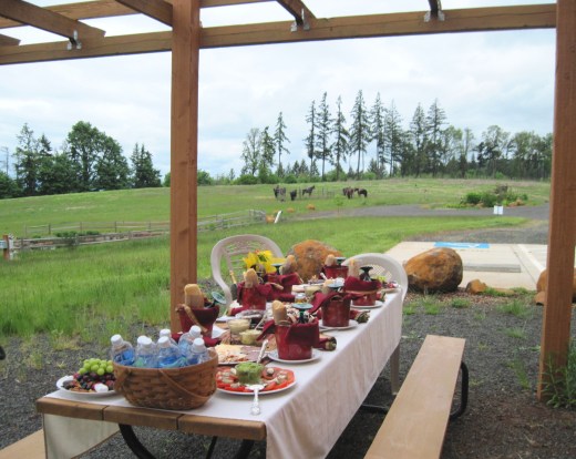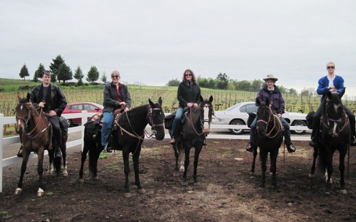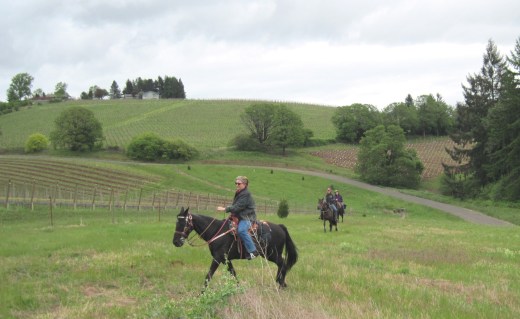 The main purpose for my visit to Oregon this weekend was to celebrate my sister’s birthday. She requested that we all join her in a Willamette Valley wine tasting tour and lunch on horseback. The Willamette Valley is now a wine destination, which we have toured many times, but never on horseback. She read about this experience in an article in Sunset Magazine. The operator, Equestrian Wine Tours, and Jake Price Stables of Carlton, Oregon made it all very simple. We arrived at the appointed vineyard at 11 am and met Jake and wrangler Sarah with the saddled horses. The ride was short, but it was fun to arrive at the tasting rooms and then our picnic lunch on horseback. Longer rides are available for those comfortable at all paces. http://www.equestrianwinetours.com/