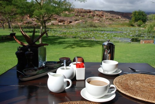 We had coffee and muffins in the vehicle, sundowner style, viewed the Rock Art, and then drove back to the lodge.