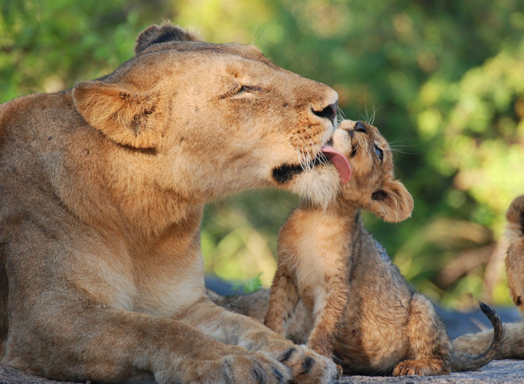 Sabi Sand is a true paradise for these wild creatures. We felt lucky to be there as observers, even if just for a few days. The morning was to become even more amazing as the radio calls began to come in. The lionesses with their cubs had been spotted by a nearby dry river bed reclining on boulders in a setting so beautiful it looked staged. Even more exciting was the news that the third lioness, whom Patrick had earlier told us had stashed her cubs somewhere, was also spotted.