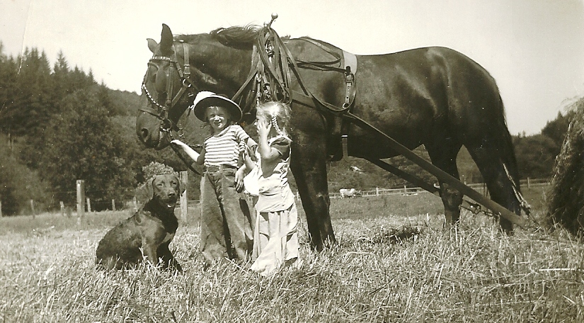 It must have been quite a sight for an 8 year old to see the huge draft horses standing in the river, sometimes with only their backs above the water line. It was hard work for the horses and my mother remembers that they would get pneumonia. The horses stayed in a barn out in the middle of the river when they weren’t working. One of my mother’s friends father was the head man attending the horses and keeper of the horse barn.