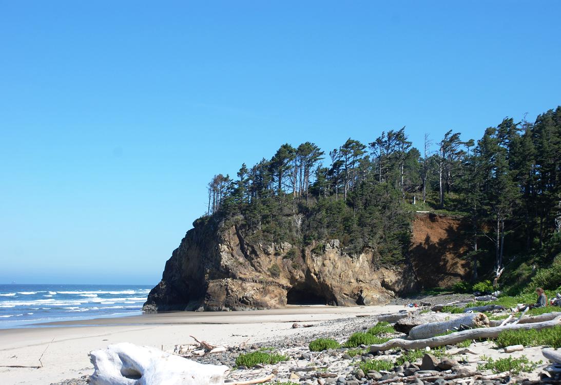 For this picnic, we headed to Hug Point.  We brought Rupert and the usual accoutrements for an Oregon day at the beach;  jackets and scarves, even in June.