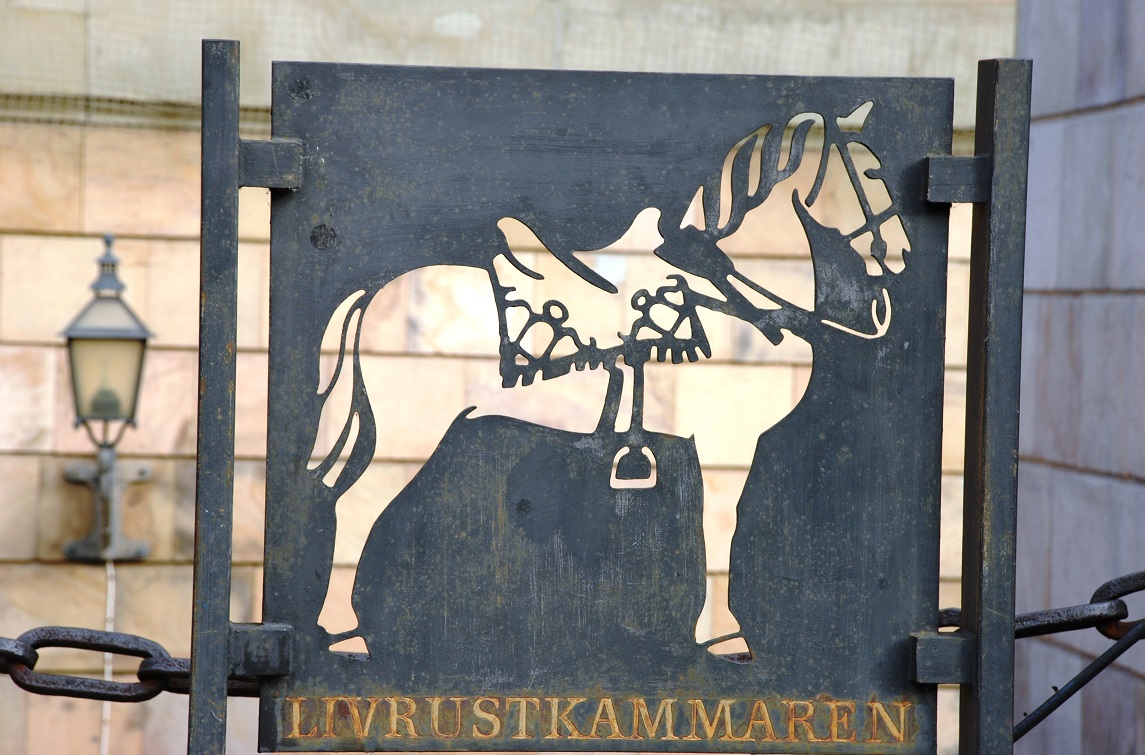 The sign to the Livrustkammaren, the Royal Armoury museum and oldest museum in Sweden. Gustav II’s stuffed stallion from 1632 is in the museum