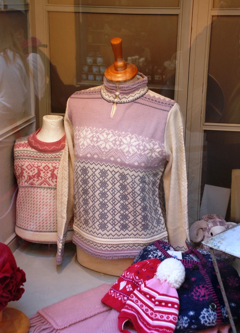 We did some window shopping, which is all you can afford here. The beautiful sweaters were around SEK 1800 – 1900. The small Dala Hests were SEK 500.