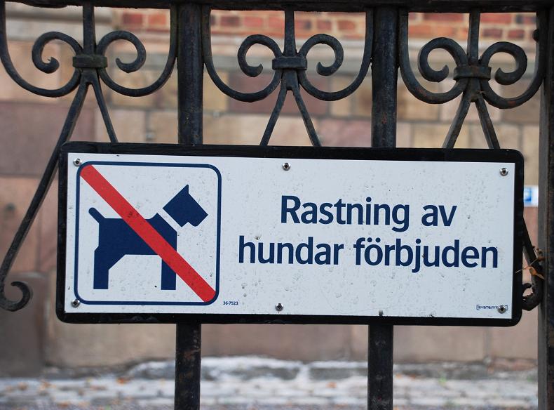 This sign on a gate in Gamla Stan warms people to be mindful of the laws regardings dogs in churches.