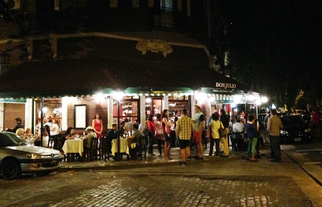 Due to an early flight at 10:20 the next day (that is early for Argentina) we left the dance at 2:30 am. My sister got her one last Buenos Aires dance in, although not the last milonga for the trip as they do have some in Mendoza as well. As we passed Don Julio’s on our way back to the hotel at 2:30 am, patrons were still relaxing at the tables.