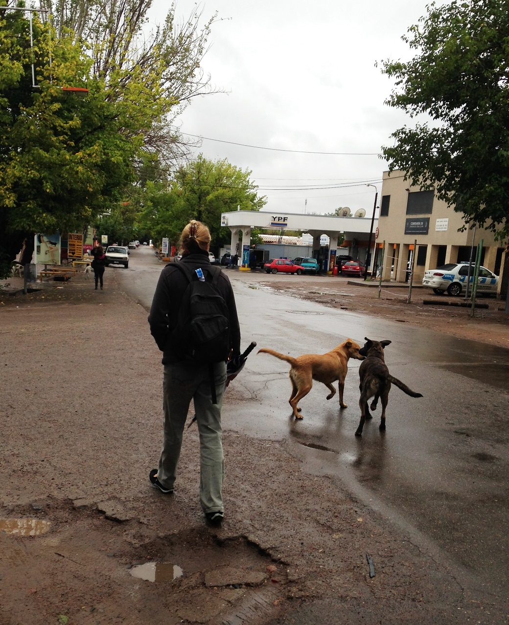 Still, you can’t waste a day sitting around, so after breakfast we walked the 30 minutes across Chacras de Coria to the Clos de Chacras winery, accompanied the entire walk and up to the winery front door by two very friendly street dogs.