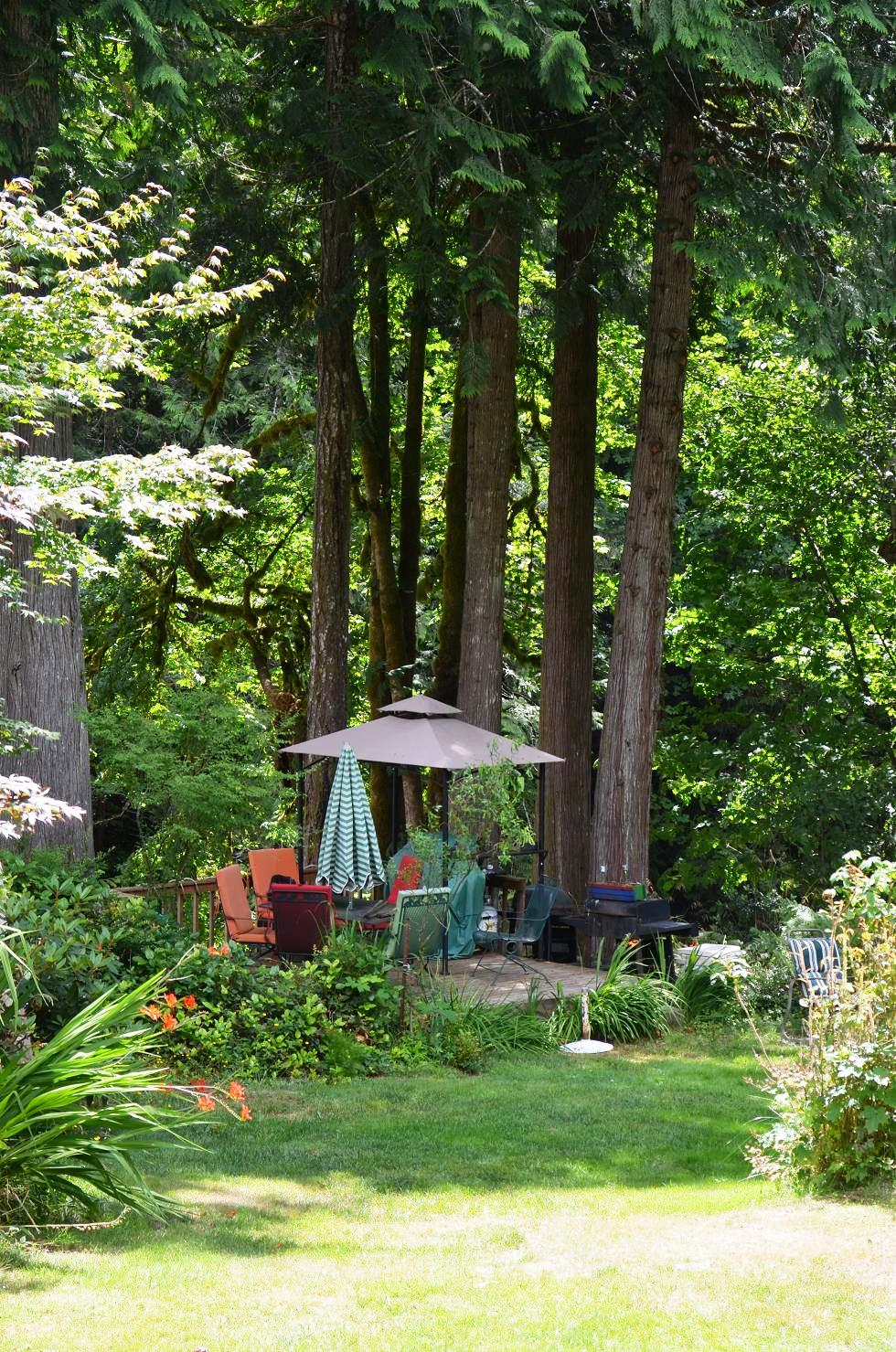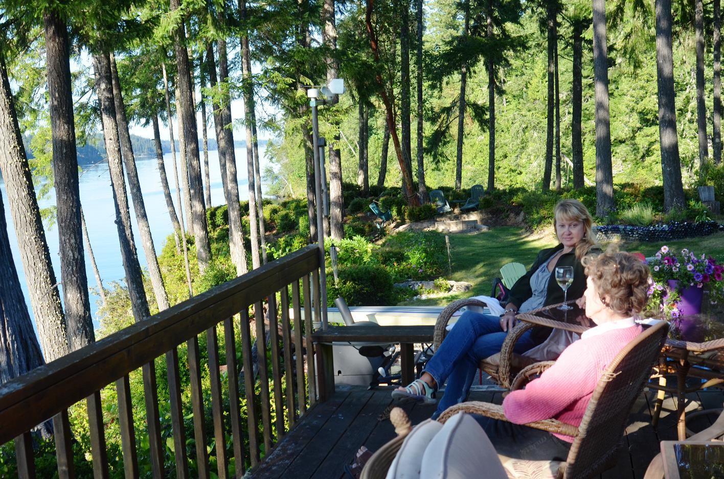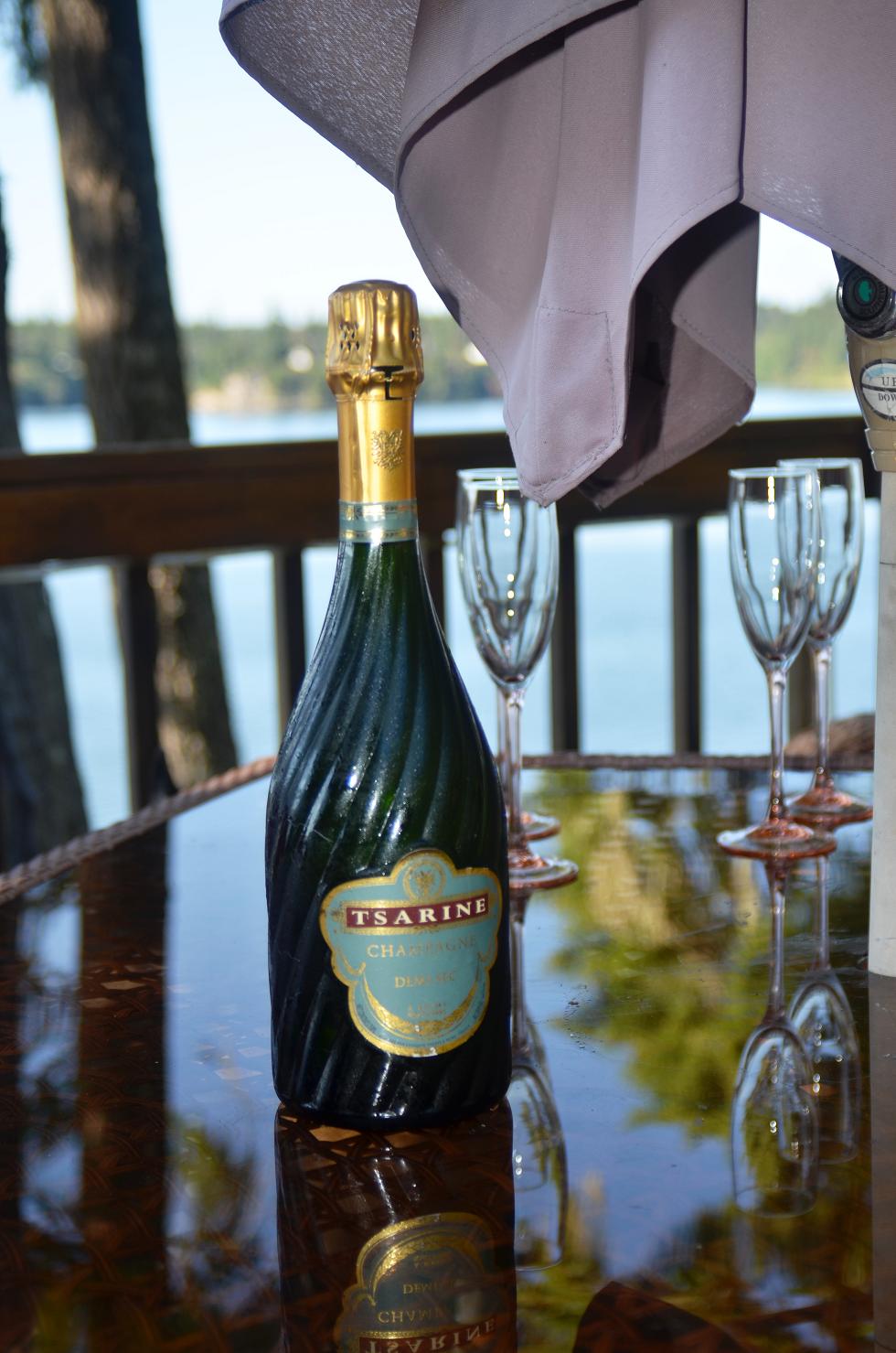 The cabin was behind a beautiful log house on Harstine Island.  They owners gave us the use of their big deck overlooking the sound, where we grilled salmon and enjoyed a wonderful bottle of champagne.