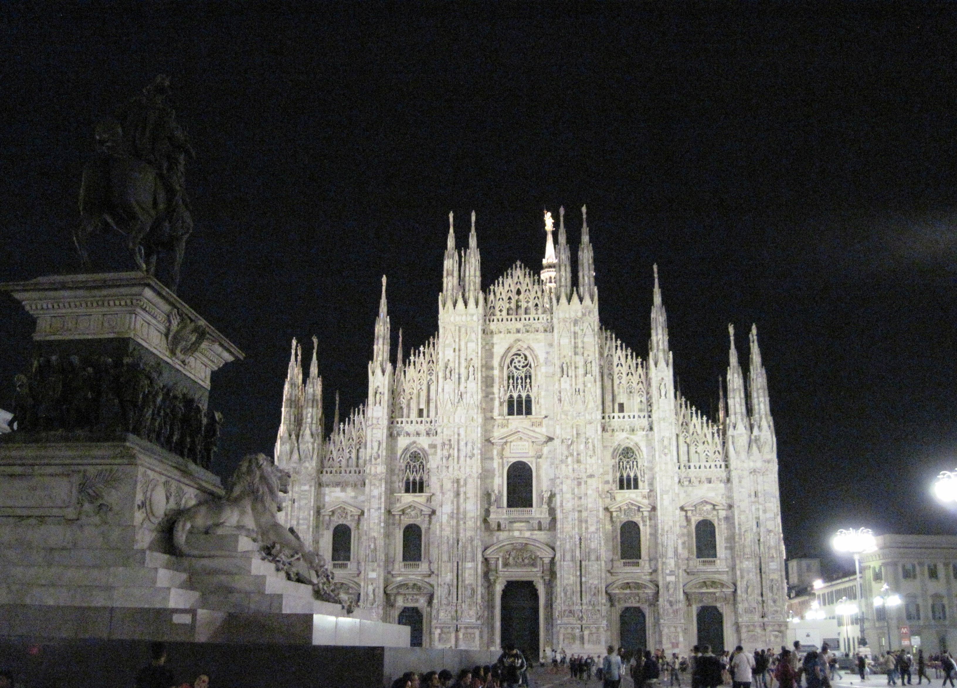 After 24 hours on the road, I made it to Milan. My travel companions and I had planned to meet in Milan, not knowing that it is Fashion Week this week. Why does that make a difference to me, not a fashion maven myself? My plan was to jumpseat (travel using a pilot ID and uniform but no ticket) to Milan. To jumpseat, there must be an open seat, and all the flights to Milan were overbooked due to Fashion Week. So instead US Airways was kind enough to give me a ride to Rome, where I took a high speed train (at times reaching speeds over 150 mph) to Milan. The three hour ride was through some very scenic countryside, unfortunately lost on me due to lack of sleep.