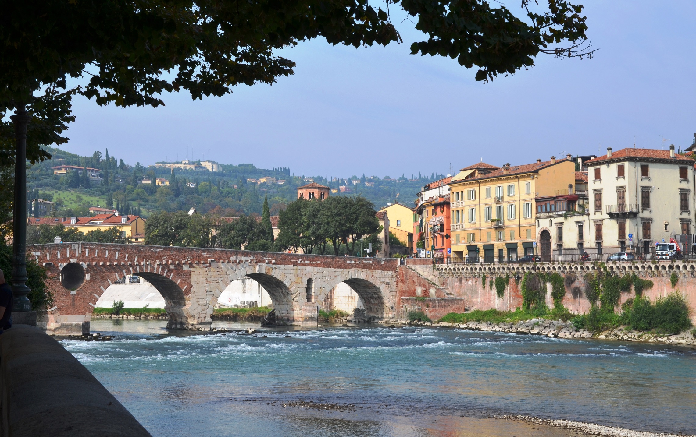 After lunch we followed the walking tour and meandered from the Roman Arena towards the Piazza delle Erbe. We found Verona, at least the old center, to be quite clean and scenic. There is evidence all around of the Roman influence, with the arena, city wall and Roman Bridge as a few examples. We also stopped in to witness the spectacle of the Juliet House. Here an enterprising individual installed a balcony and claimed it to be Juliet’s. Her statue is in the courtyard. It was packed with tourists despite the fact that Romeo and Juliet is a work of fiction and Shakespeare had never been to Verona before writing his play. However, there was a history of feuding families in the area, so who knows.