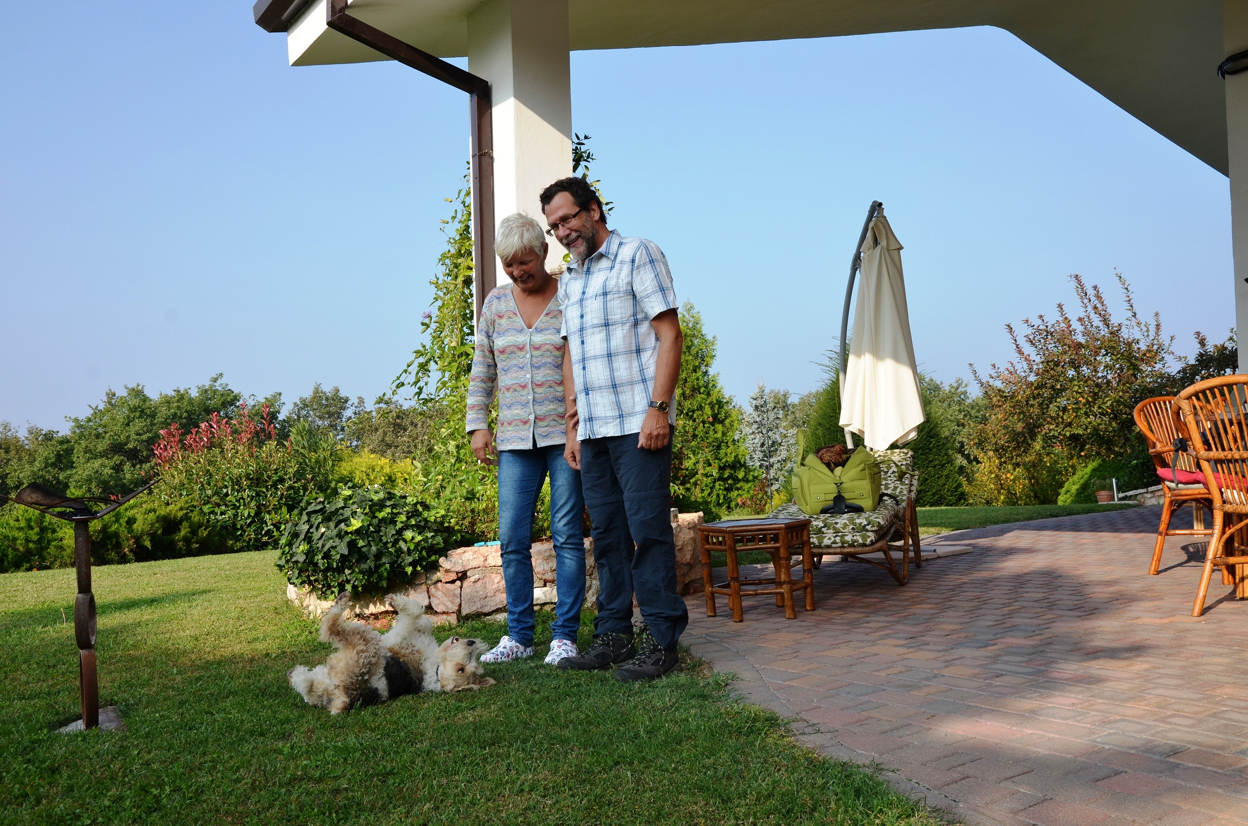 Back at the train station, we waited at the curb as our ride, B & B proprietor Romy Rocker, pulled up to whisk us out of town and into the hills overlooking Verona. Normally this is not a service they provide, and we were thankful for the lift. Romy Rocker B & B is about 20 to 30 minutes out of town, up in the hills. As Romy drove us to her home, she explained that she was the first B & B in the area, started about 25 years ago. Most guests stay for a few days, arriving by rental car. We hadn’t really realized how far out of town it was, but were very pleased to spend a night in the quiet countryside surrounded by vineyards and olive trees. It was a scenic ride to their piece of heaven and our hosts, Romy Rocker and Claudio Bartolamai were gracious and kind.