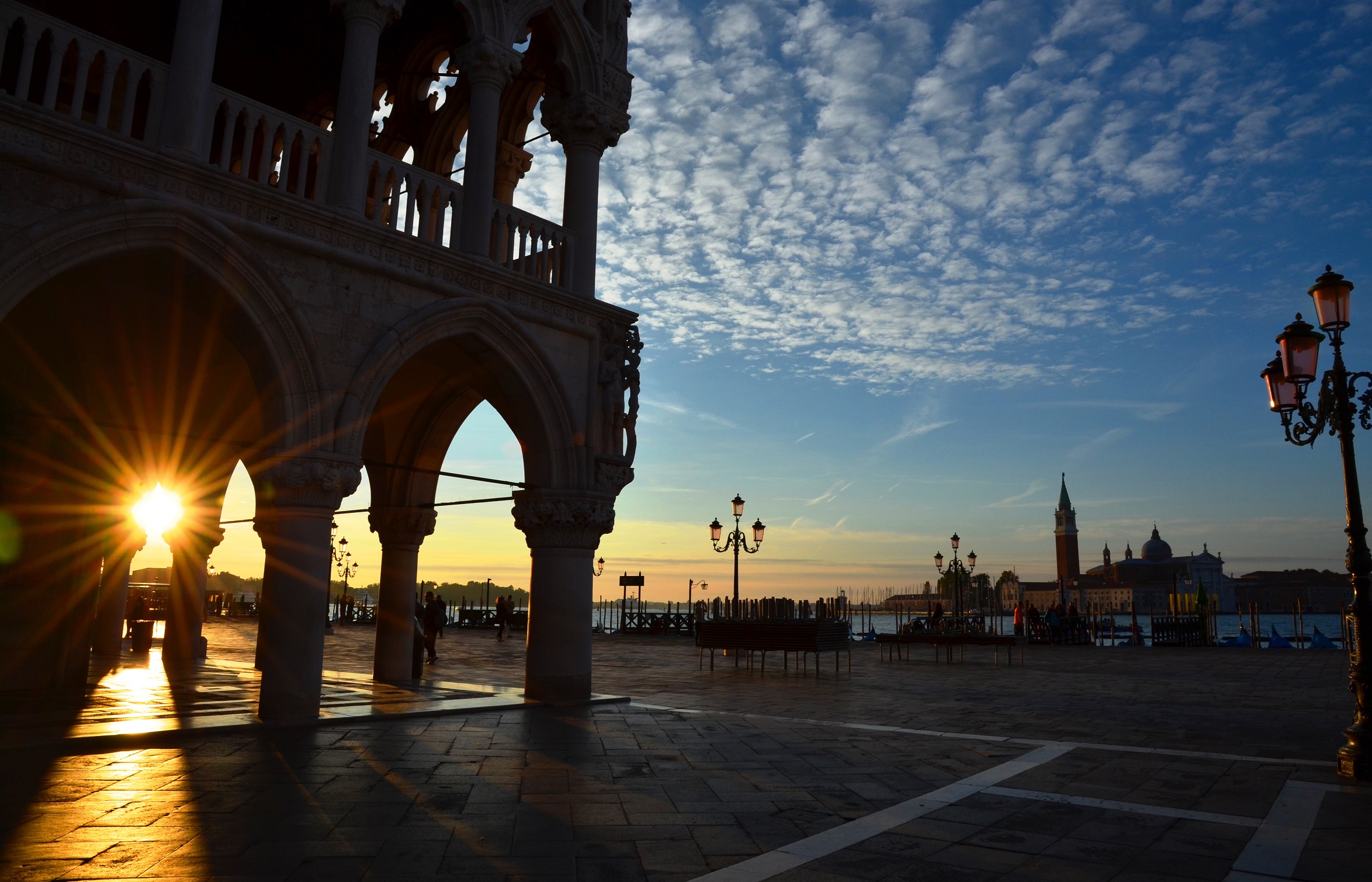 On our last morning in Venice, I awoke at 630 and hustled one last time down to Piazza San Marco for another crowd free Venetian morning. I was glad of my decision as the sun rose and tinted the sky a pale pink. Again, only photographers and very early morning workers were out and about. It was peaceful and beautiful. I arrived into the piazza earlier than a few days before, and moments before the lights lining the square were shut off.