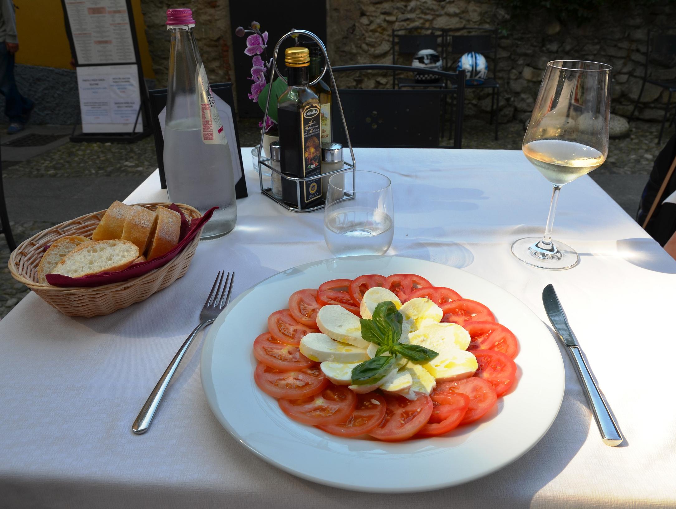 I found a wonderful spot for lunch up the hill on a side street and ordered the specialty of the area; lake perch with risotto and asparagus.  I also sampled a caprese salad, and of course some local wine.