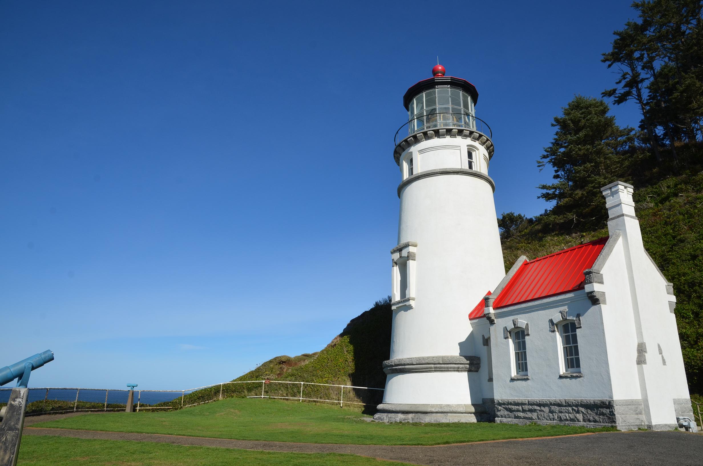 On my mother’s birthday, we drove south to the Heceta Head Lighthouse, built in 1892.  It was restored in 2011, but the lighthouse, the lightkeeper’s house, and the oil house are all original structures.  The Assistant Lightkeeper’s House is now a B & B.  (www.HecetaLighthouse.com)