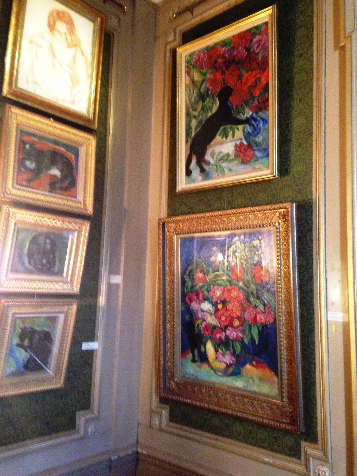 We visited the cat art museum called Katten Kabinet, and had the sweetest, most talkative little docent of any museum I’ve toured. Her name was Shirley and she had a hair trigger purr. She guided us through the rooms of cat art in a converted canal home; two museums in one really, as we were able to see what one of the old houses looked like on the inside.