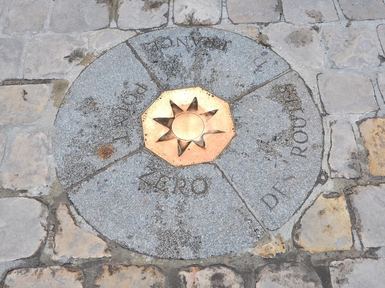 Kilometre Zero, the point from which all main-road distances in France are calculated, located on the western side of Notre-Dame