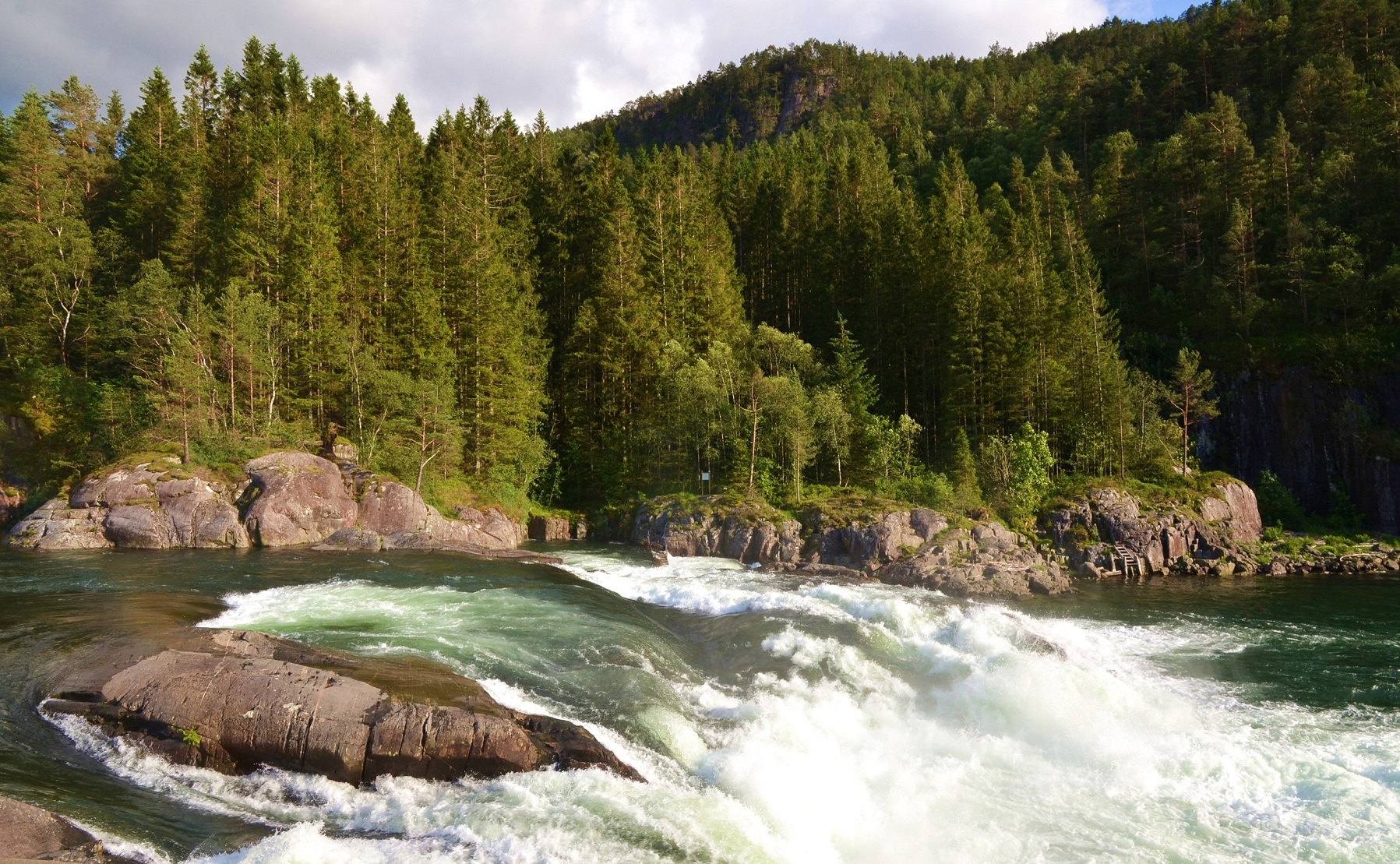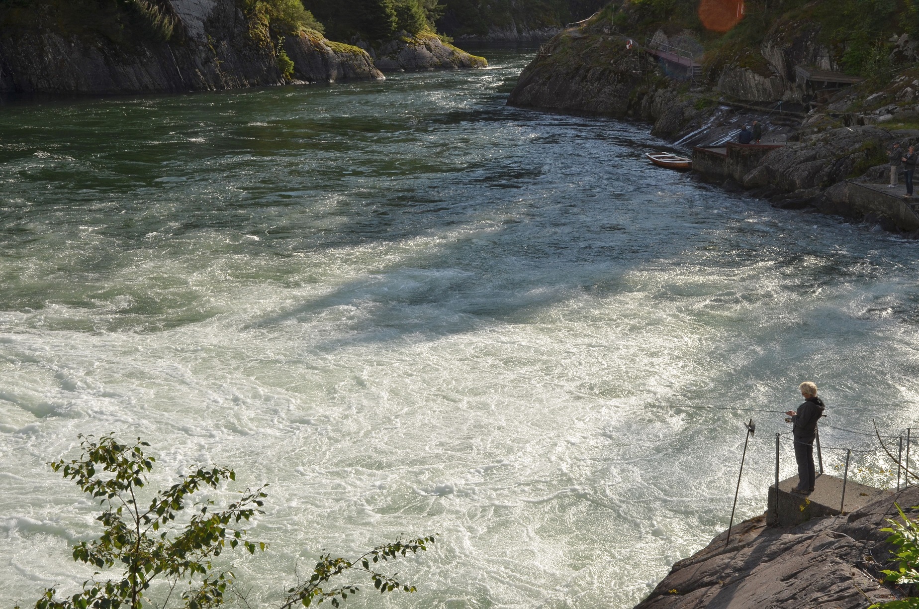 A short walk from my aunt’s house is Suldalslaagen Fossen, also known as Sandsfossen.  The first written record of salmon fishing in this area was in 1000.  We saw people fishing at the falls in the evening.