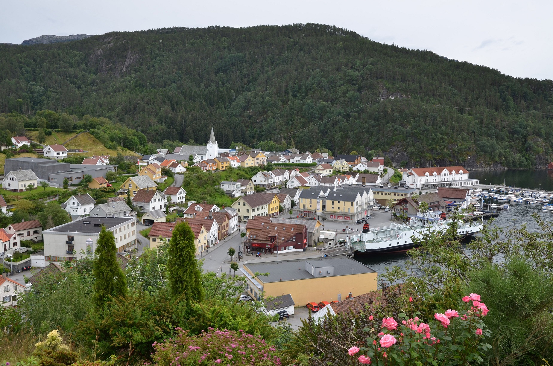 One of the things I love about coming to Norway is how clean and orderly everything is.  You just don’t see any junky houses or cars, and the ferries always run on time.  Sand is a sleepy little town, with cute old wooden houses, and just a little bit of tourism.  It isn’t as busy and industrious as it used to be when my father lived here.  There are just a few shops, and some are not open every day.  The bank only changes foreign currency on Mondays and Thursdays.  The biggest draws for the town are fishing, the Ryfylke Museum and the Fjordhotel.  I had good luck at the local antique shop, finding a beautiful woven Hardangar table scarf and a bowl decorated with rosemaling.  The exchange rate is the best we have seen in many years, 8 NOK to $1.