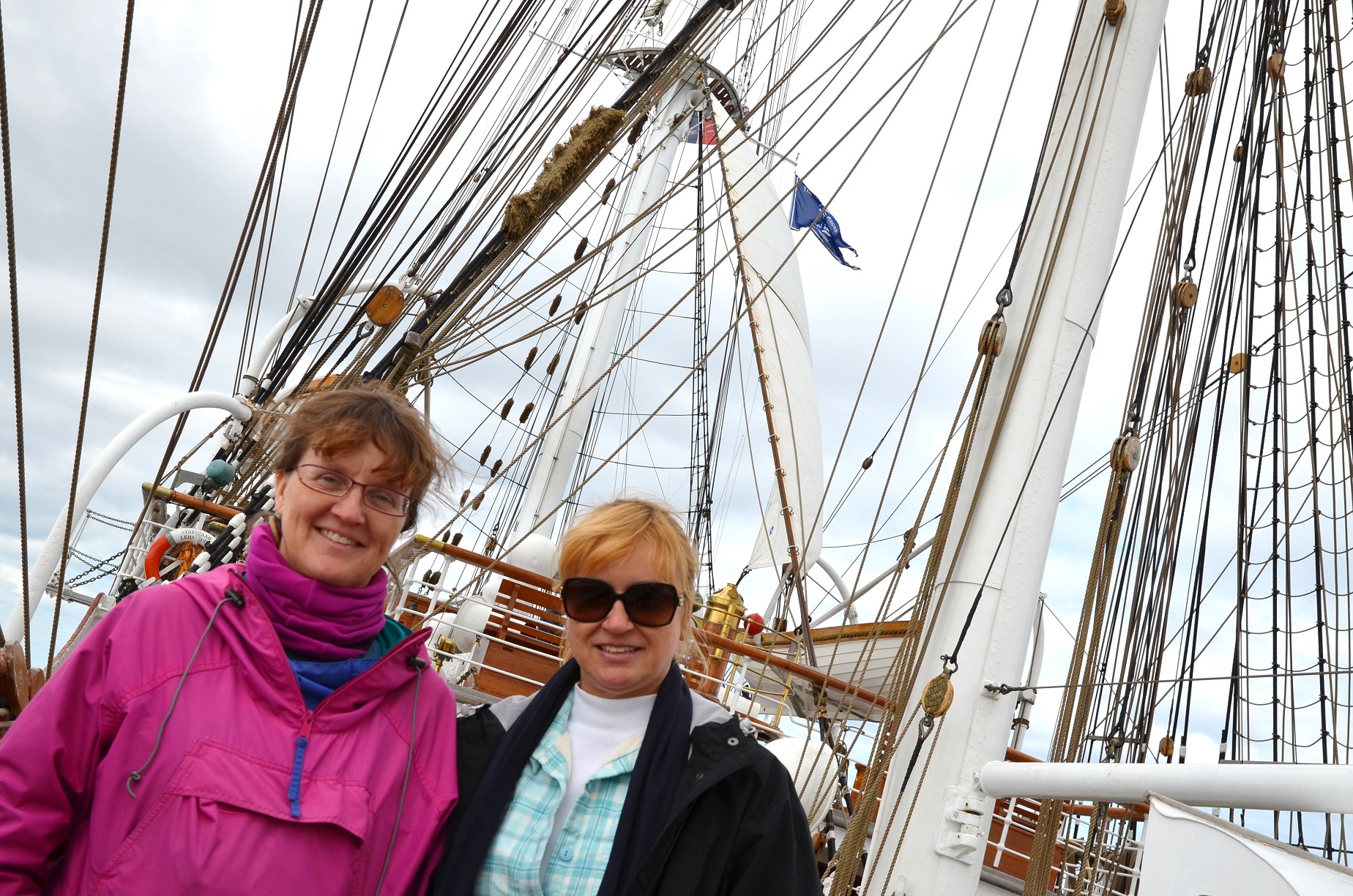 We are here in Norway for two reasons: to pack up some things from the house, and sail the Statsraad Lemhkuhl in the Tall Ships Regatta from Kristiansand to Aalborg, Denmark. Our father was a cadet on this same ship in the late 1930s. When we discovered we could sign on as crew members, it didn’t take long to pick a few dates and make a deposit.