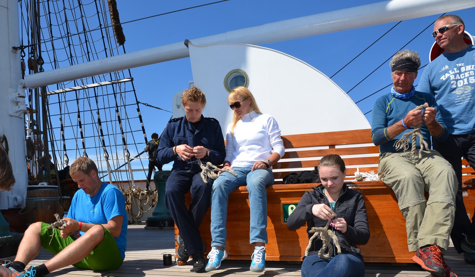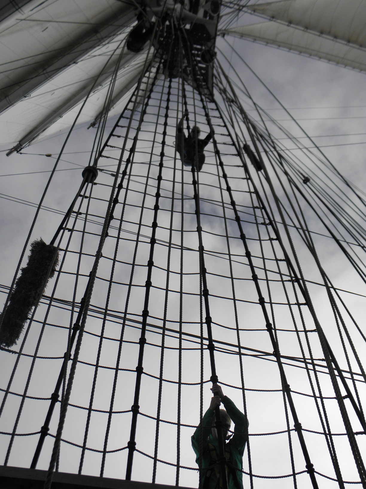 The afternoon shift was much calmer, and afterwards the entire group of trainees gathered on the main deck to learn sailing shanties from the ship’s “shanty man” Haakon Vatle from Storm Weather Shanty Choir. After our watch we also got to climb into the rigging.