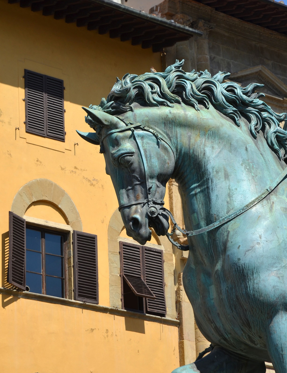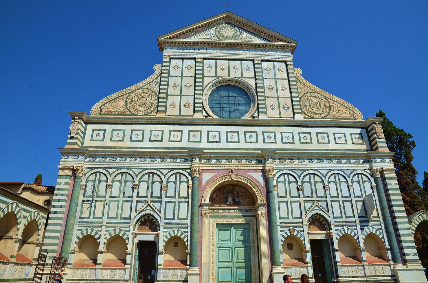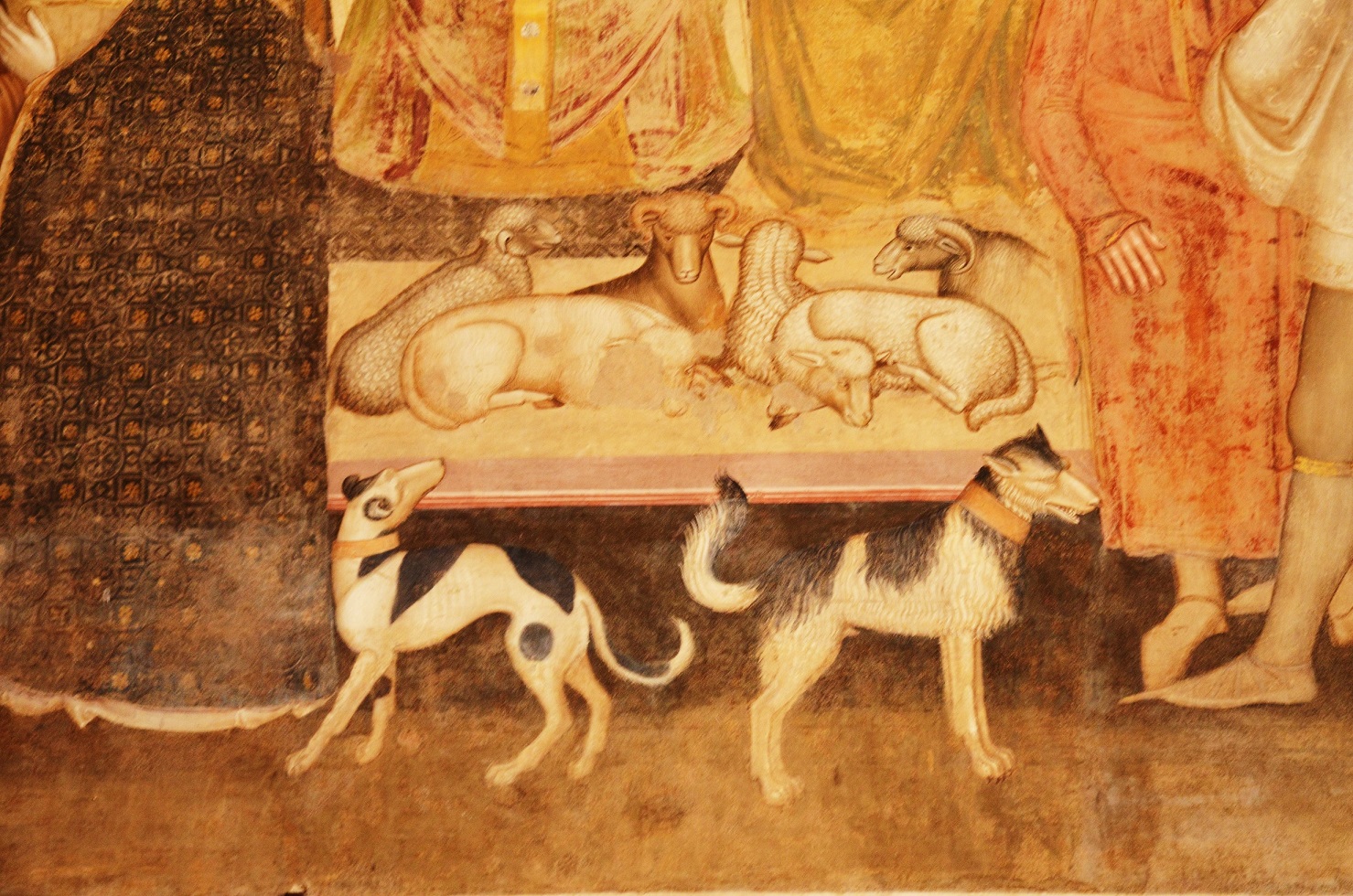 As you exit the Florence train station the Santa Maria Novella is right across the Piazza Della Stazione. None of us had toured this church before so it was a good place to start. The foundation stone was blessed in 1279, and the church completed in 1420. The most incredible frescoes detailing the Stories from Genesis, painted by Paolo Uccello in the first half of the 15th century, cover the walls of the Green Cloister. We spent some time in this room reading the descriptions and picking out the scenes of Original Sin and the Great Flood. In the foreground of my favorite frescoe, “…in front of the pope and the emperor, the flock of the faithful is protected by two black and white dogs, the so-called Domini canes (the Lord’s dogs) which traditionally symbolize the Dominican Friars.”