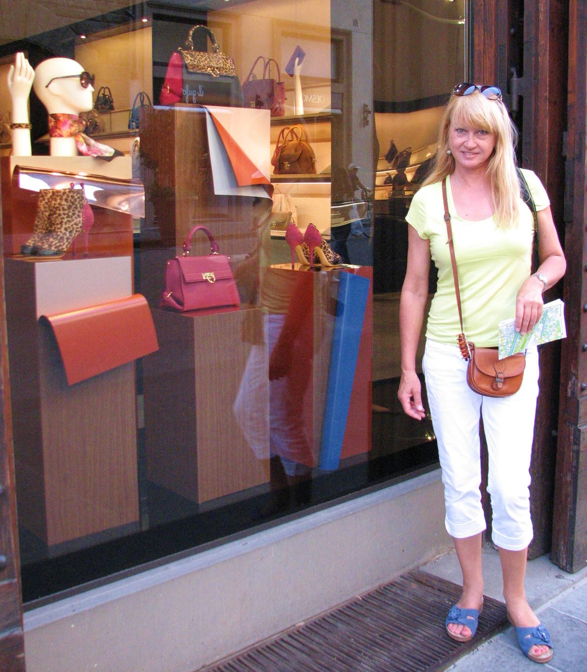 After lunch we made our way back towards the Ponte Vecchio and I found one item I had been looking for – beautiful shoes in a lovely color and on sale. Teresa also found a beautiful pair of shoes, not hard to do here, making us both happy shoppers. So we did do a little shopping after all.