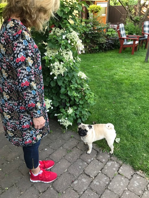 Monika, proprietor of Hagebo B&B, and one of her pugs. We liked our stay and would recommend it.