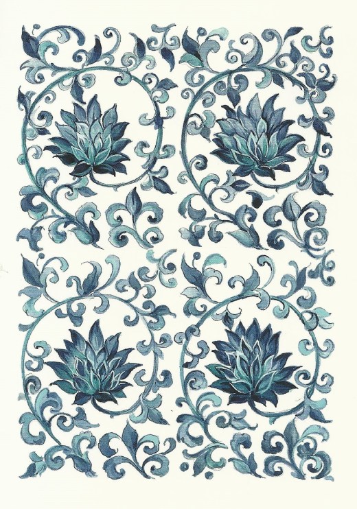 Flowering Apricot. Inspriation from a Chinese Vase, Kangsi period. Handbook of Decorative Motifs, Birthe Koustrup