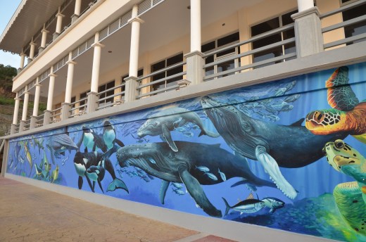I was impressed with the detailed mural on the side of a building on the dock. A true work of art.
