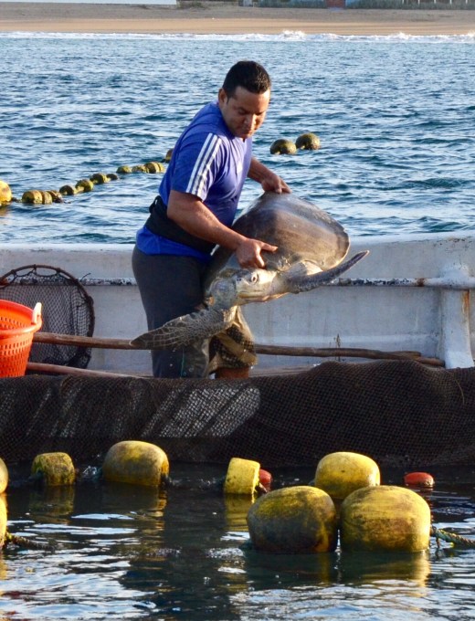 As we waited for the bait, one of the fishermen held up a turtle from the net. I was concerned at first for the well being of the turtle, but I shouldn’t have been. The turtle was released.