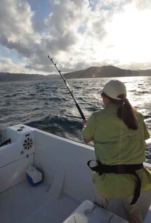At one point there were fish on three lines. All hands on deck.