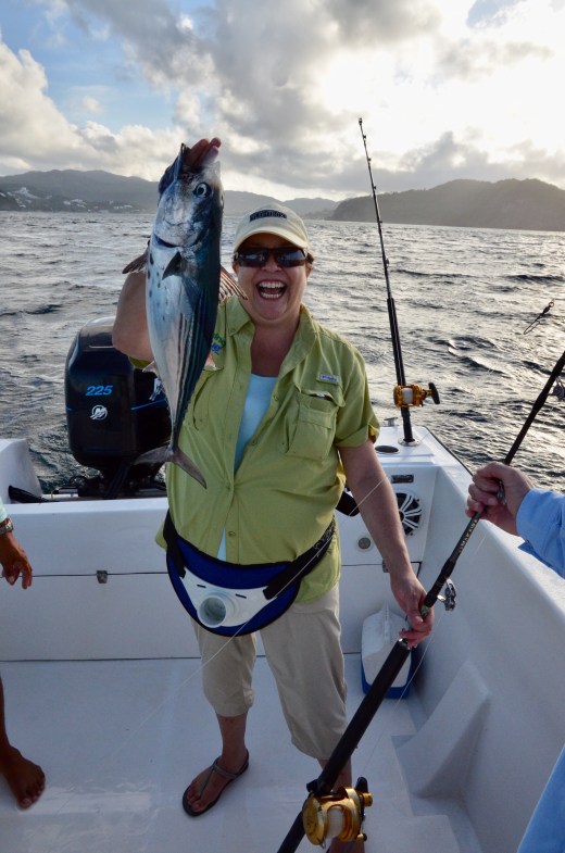 As we cruised towards open water, José and Dorian rigged the trolling lines. In no time at all, we were hit by a barrage of Bonita.