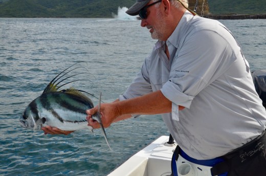 Someone requested a Roosterfish so Dorian steered the boat to an area known for them. Like clockwork, the lines went in the water and all three anglers got one. They are catch and release.