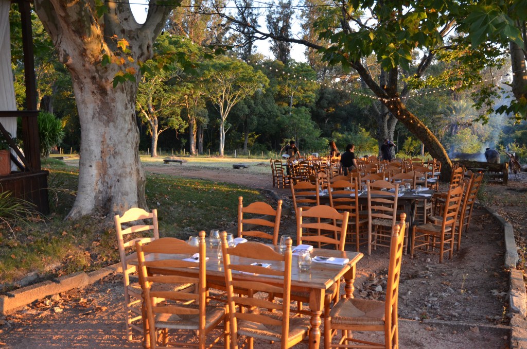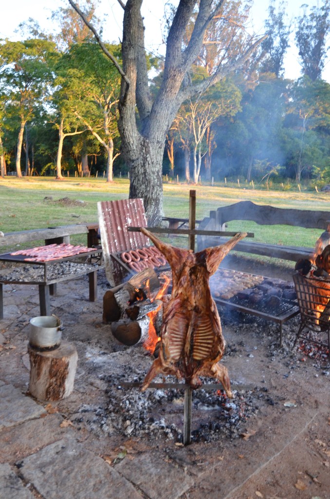Here at San Pedro de Timote they really know how to throw an outdoor dinner party. There was a large corporate conference staying at the estancia when we first arrived. It was an agricultural group of some sort. We were lucky to be here during their last evening. The estancia put on an outdoor barbecue for about 100 people. They had two guitar players. It was wonderful to experience, although we do not eat meat.