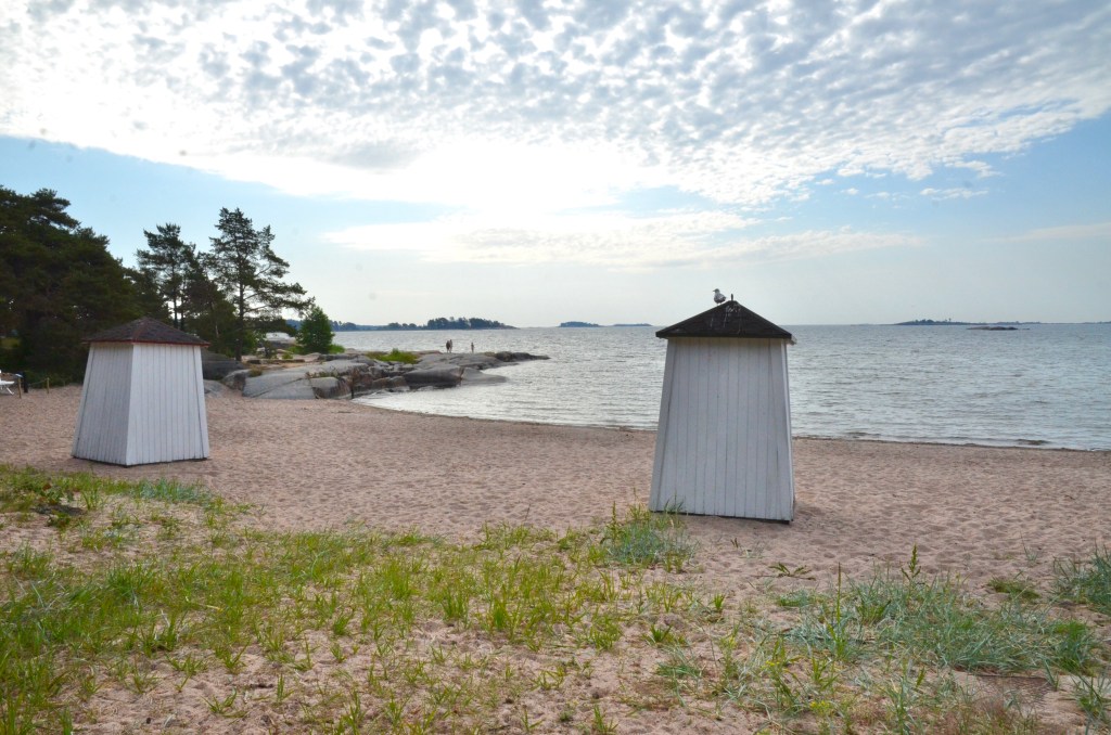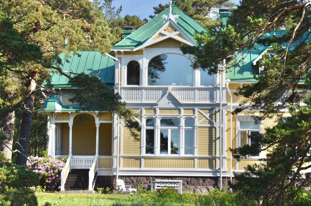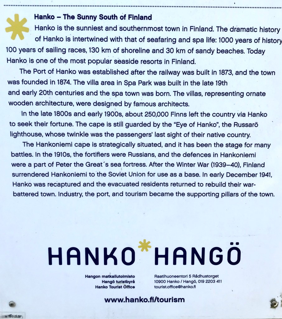 Hanko is a beautiful coastal town in southern Finland. There is a walking path along the water that leads out of town and takes you past villas, many with names and dates painted on the side.