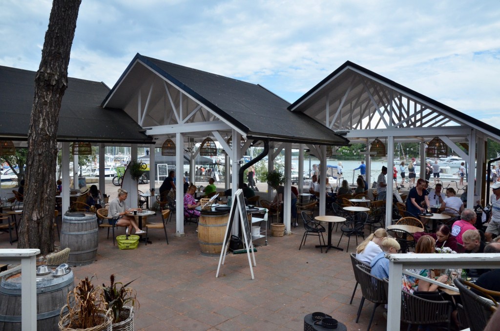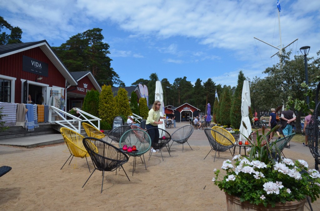 A short distance away we found the bustling waterfront area of Nagu. It was much busier and a younger crowd than what we had experienced on Ruissalo. Shops and restaurants were open, it was packed with people, and boats were coming in and out. It had a party atmosphere.