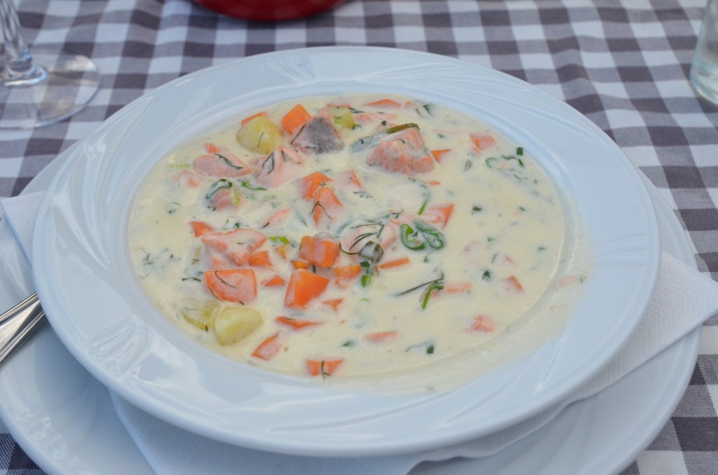 The dining room for guests includes an outdoor patio, and with perfect weather, we dined outside. We were so glad we did, because as we sat on the patio, a moose wandered through the field next door. The food was excellent.