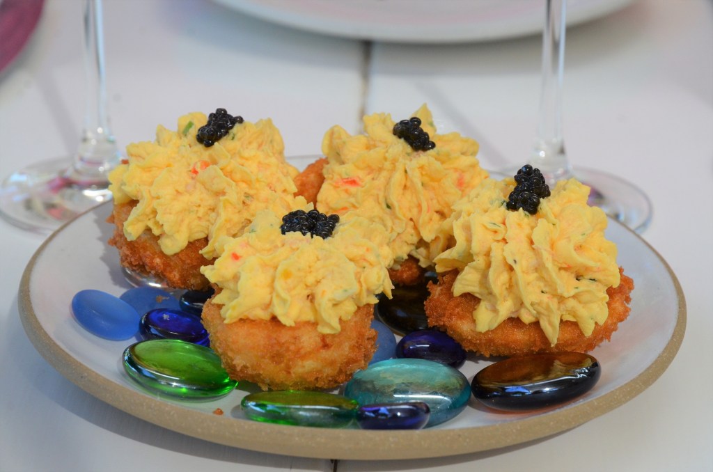 These were hands down the best deviled eggs I’ve ever had. They are called “crispy lobster deviled eggs.”