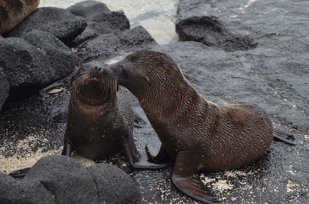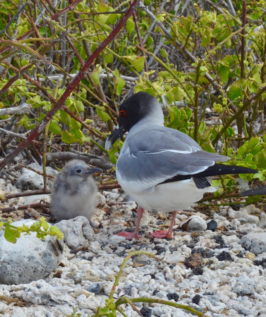 The next mornings nature walk along the shore of Darwin’s Bay we saw every stage of chick development, from newly hatched chicks with no fuzz at all, fuzz covered babies, to week old chicks and “teenagers” demanding to be fed. If yesterday was sea lion pup nursery, today was a bird hatchery.