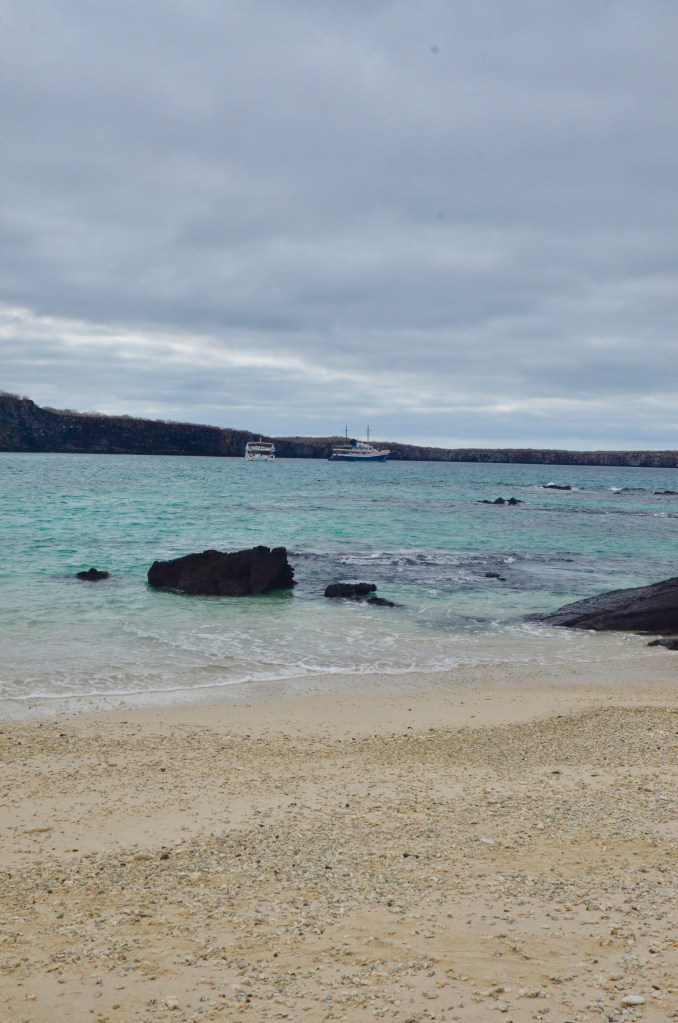 After the morning nature walk we participated in the mid morning snorkel, our third of the trip. For today’s snorkel we were on the western edge of the caldera, more open to the sea. This area is known for hammerhead sharks, and the guides gave us an 80% chance of seeing them. I really wasn’t thrilled about that but everyone else was. And sure enough, we saw quite a few hammerhead sharks, including a few large ones. At this point, a bit late actually, I asked Lennie about the dangers. He assured me, as the sharks cruised about twenty feet below us and I’m trying to talk between the swells, that there has never been a hammerhead shark attack on humans in the Galápagos. We survived the snorkeling expedition and returned to the boat for lunch.
