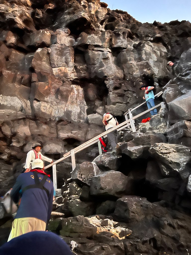 After lunch and a rest, we again took the pangas to the island, but this time to the eastern side of the caldera. We climbed Prince Phillip’s Steps to the plateau about 80 feet above the waters surface.