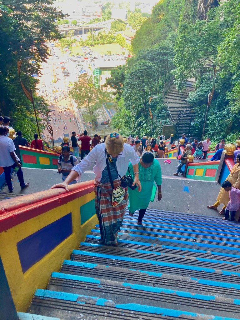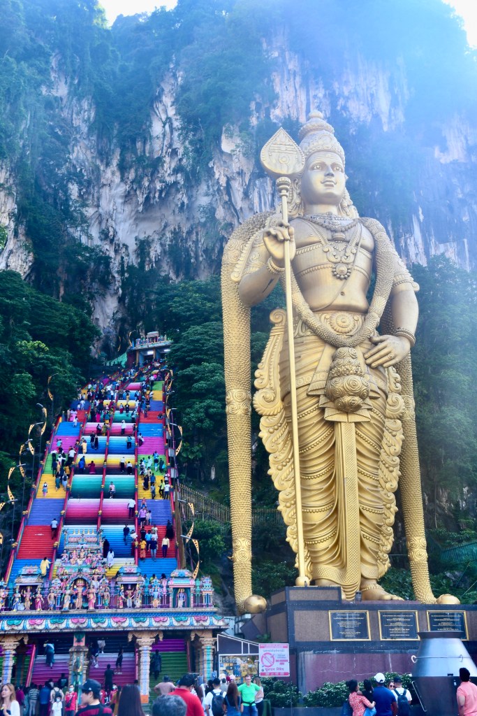 After a restorative ten hours of rest and a stellar breakfast buffet at The Majestic Hotel, we met Patrick, our guide for a morning city tour. We couldn’t have asked for a better guide. Enthusiastic, full of information and years of experience, when we mentioned our number one sightseeing wish of the Batu Caves, he quickly shifted gears, ditched the scheduled tour and expertly sidestepped the long queue of cars and deposited us near the entrance.