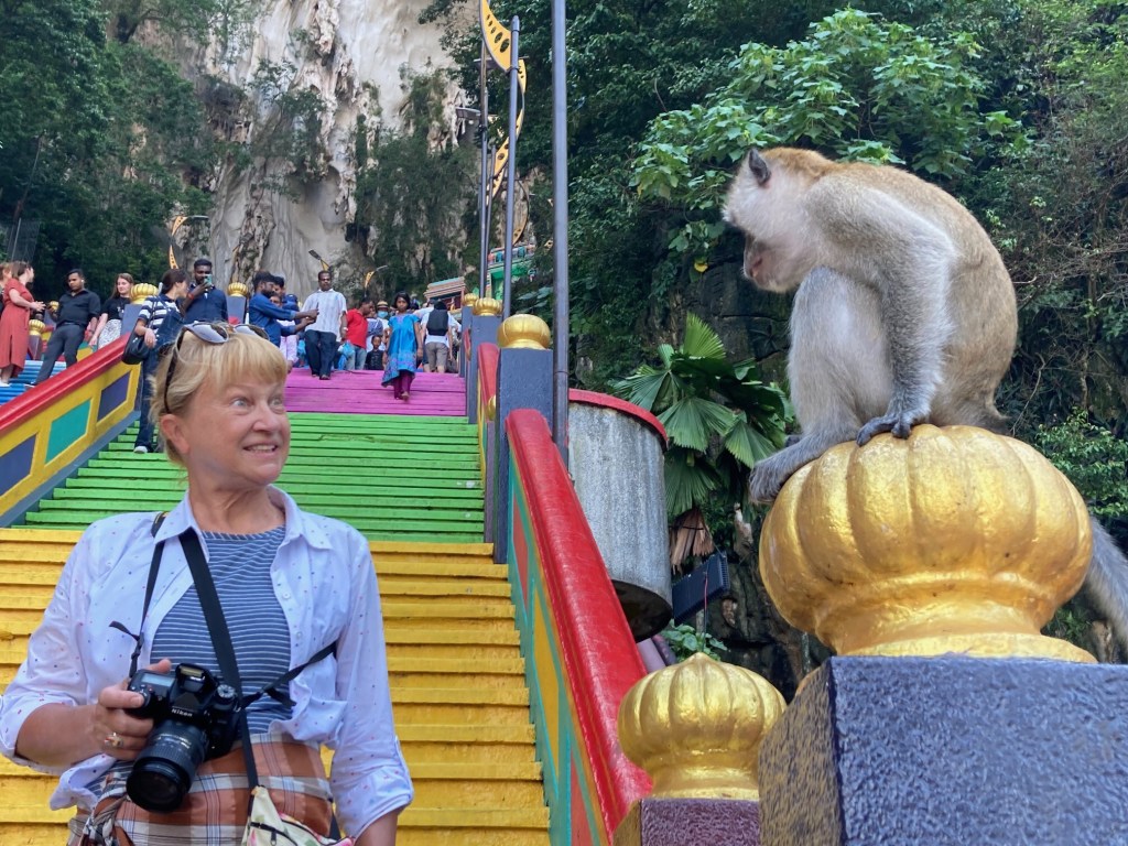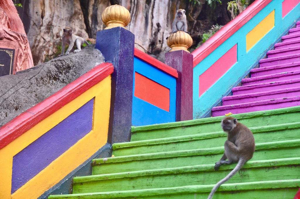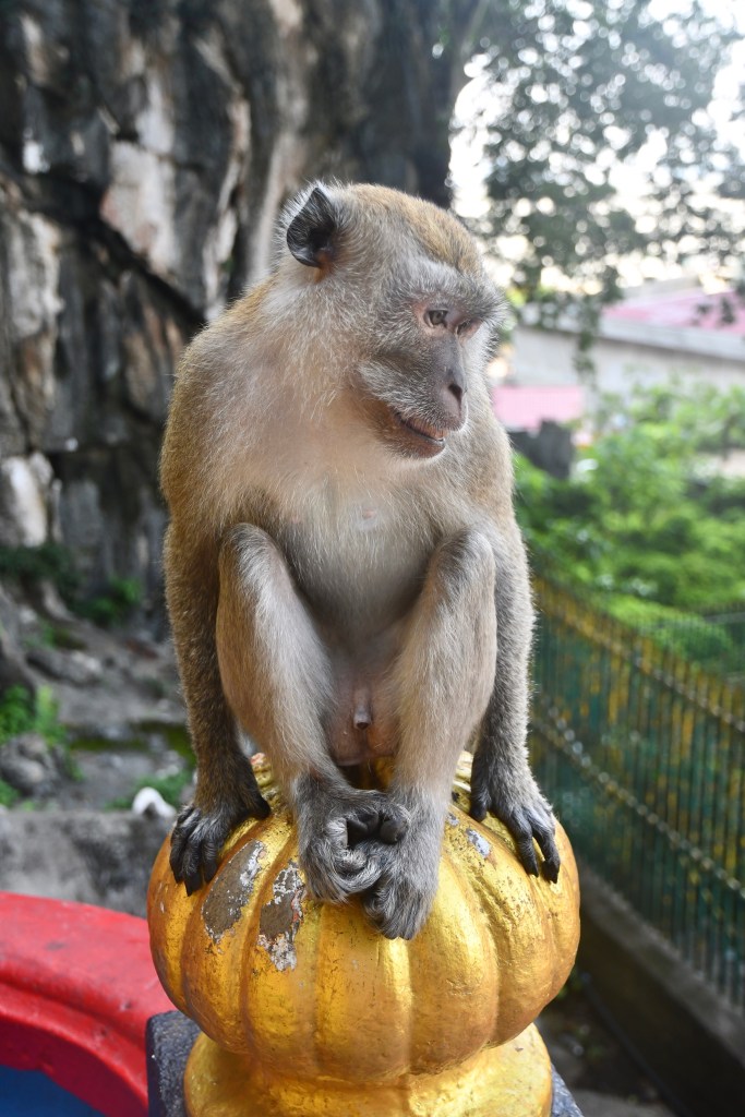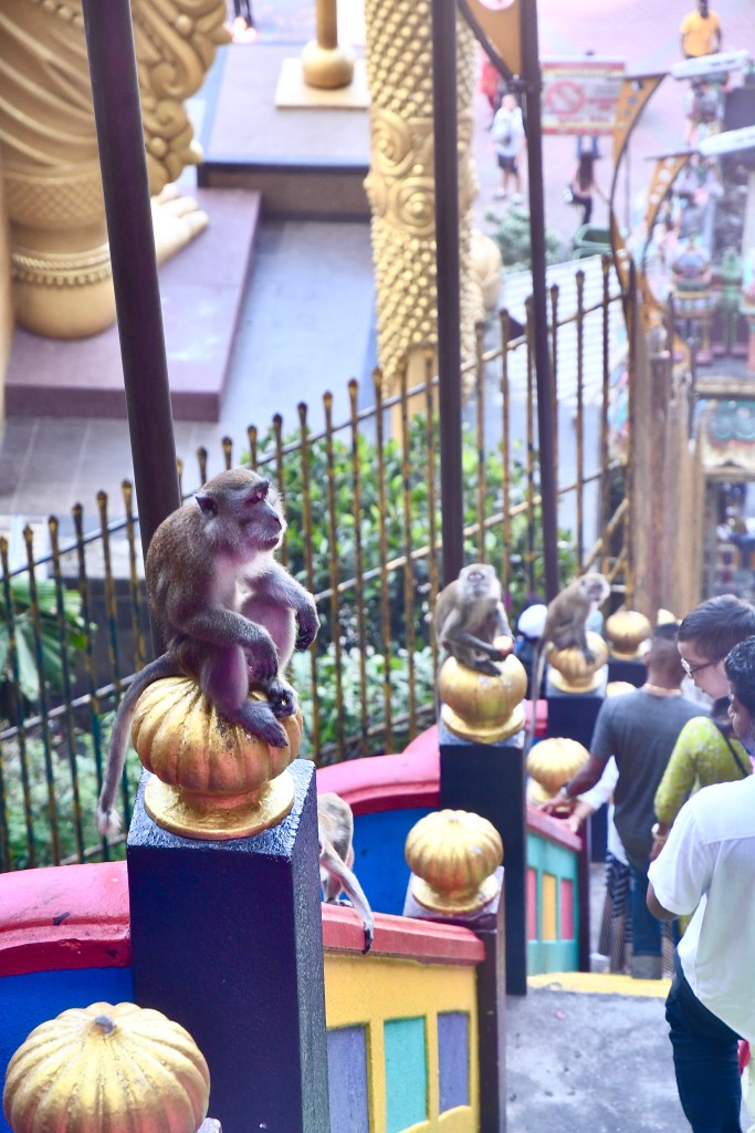 The Batu Caves are not far out of town. It was a Sunday, and very crowded. We climbed the 272 steep steps to enter the caverns. Monkeys scamper between the tourists and the worshippers. Incense is burning, music is playing, and despite the crowds, people are respectful and polite. I skipped the parts of the temple that required shoes be removed.