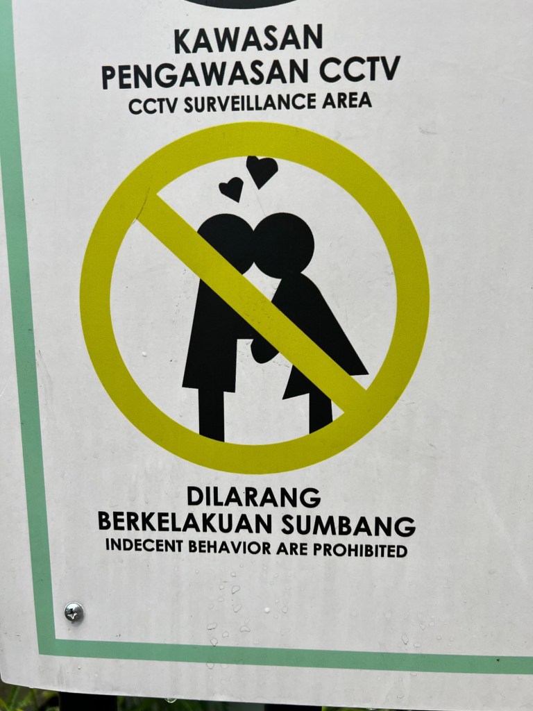 The sign of kissing says “Indecent behavior is prohibited”. Does it include a light kiss? At first I thought it was a covid warning.