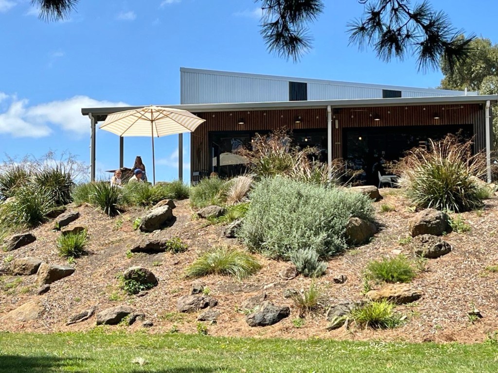 We thought we’d head inland from the coast for lunch. In our cabin there was a brochure for Keayang Maar Vineyard. It is located north of the small town of Timboon. The drive was on small country roads through tree lined alleys, dairy farms, and fields. It was very pleasant and mostly devoid of tourists. We did not see one motor coach or camper. Those are all on the Great Ocean Road.